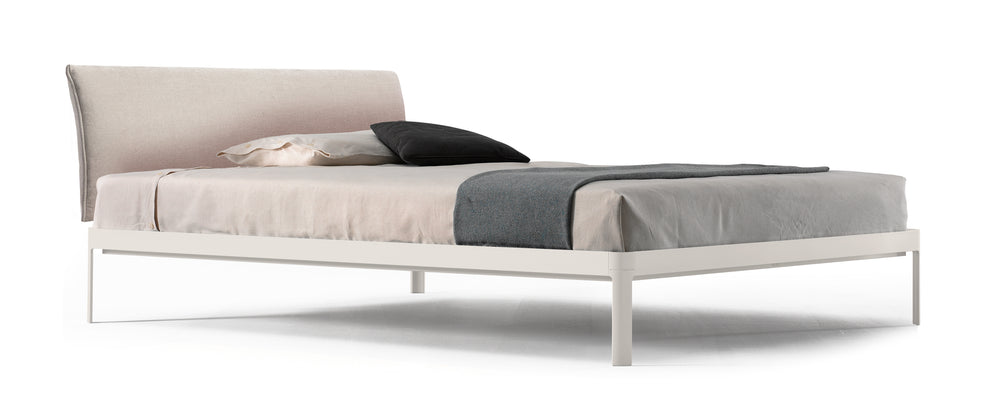 The Min Bed AluAlu is the minimal bed designed by Luciano Bertoncini and made in Italy. Its lightweight powder-coated aluminum frame, in white, black or Jaipur red, includes a wooden slatted base and assembles in minutes. It ships worldwide in a compact box, with shipping to the United States and Europe included in the price.